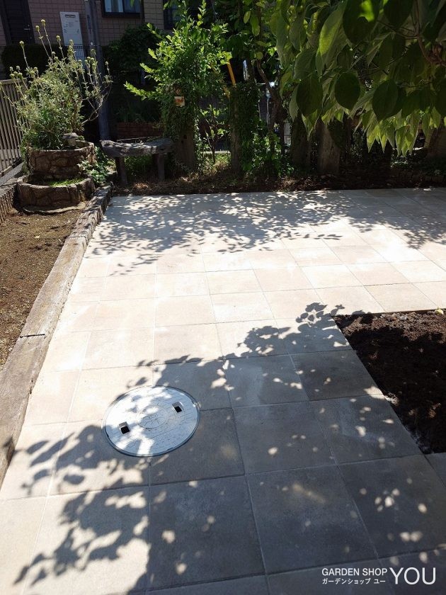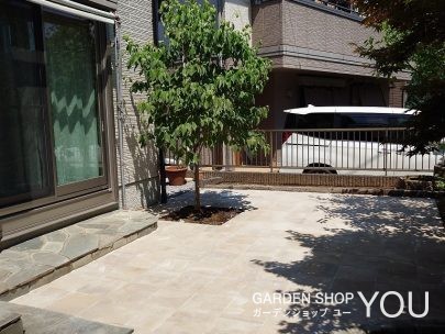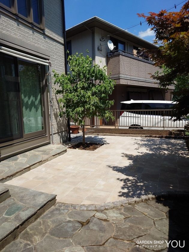 駐車場・駐輪場テラス・デッキ植栽(樹木・草花) 使い勝手のよいフラットなお庭 木のまわりに敷き詰めたインターロッキング グラデーションが自然石のタイルのよう 広々と使いやすいお庭に コンセプト フラットなスペースをなるべく広くとったお庭。 自然石にも似たグラデーションのあるインターロッキングを使用し、ナチュラルな雰囲気を出しました。 施工事例一覧に戻る