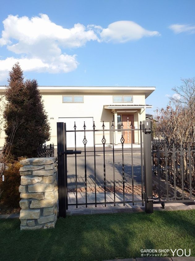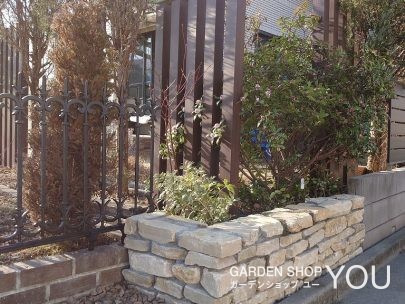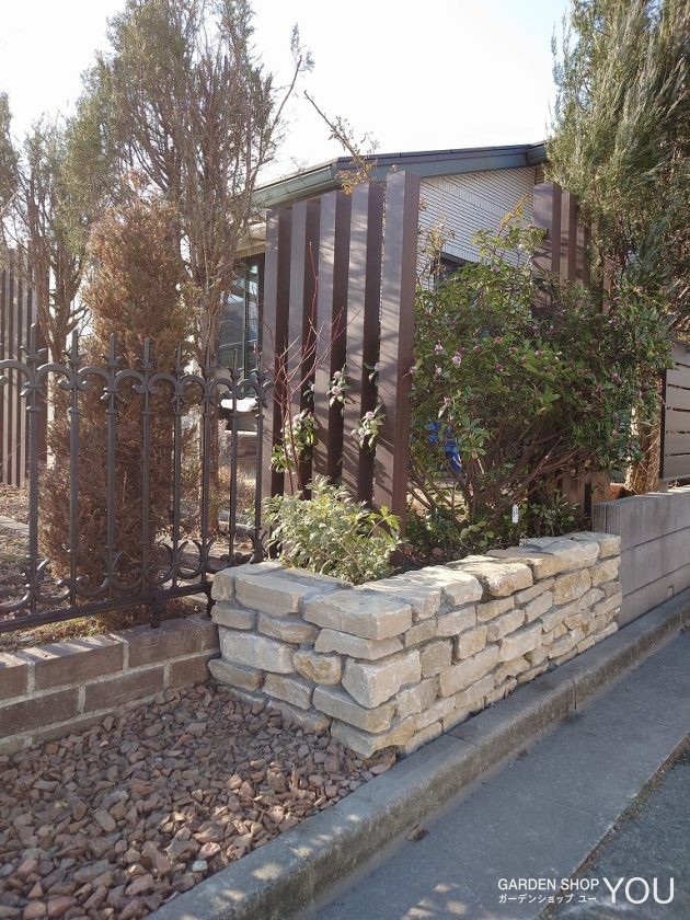 門柱・門塀コッツウォルズストーン門扉門まわり塀・フェンス花壇 ワンちゃんのために囲いを ワンちゃんが外に出ないように門扉やフェンスでしっかりと囲います。 門の前にはシンボルツリーのプンゲンス・ホプシー。 ドライウォール積みの上にフェンスをつける裏技。 ドライウォール積みとフェンスの組み合わせ コンセプト 元々広く素敵に作られたお庭でしたが、ワンちゃんが走り回れるようにそれとなく囲いを設けました。 施工事例一覧に戻る