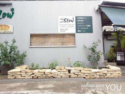 英国の天然石コッツウォルズストーンは、そんなナチュラルなお店に溶け込むように馴染んでいます。